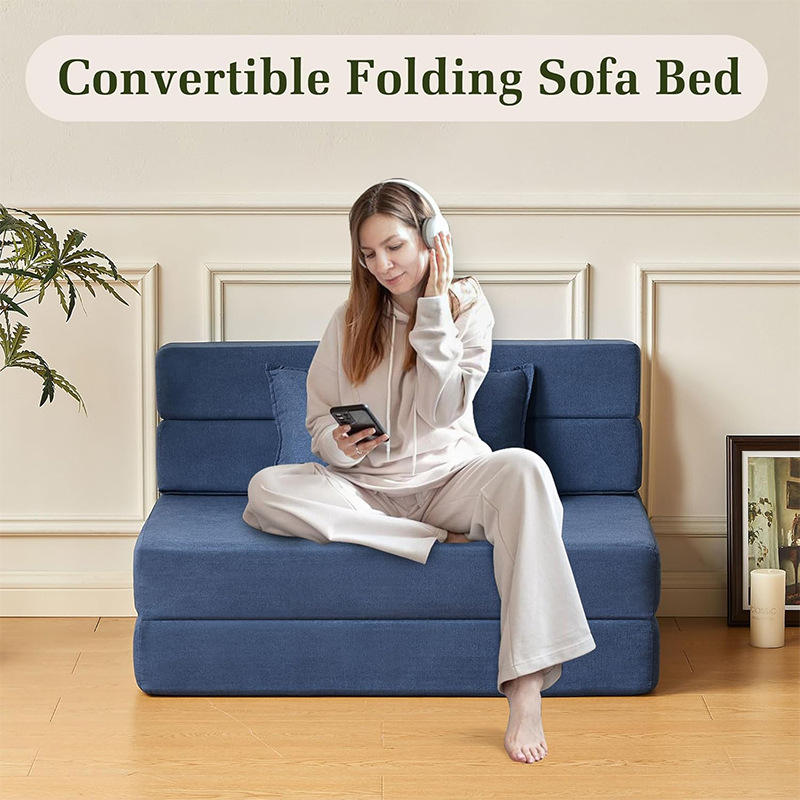 Custom Designed Compressed Roll Wrapped Tofu Block Sofa Bed Square Convertible Foam Filling Corduroy Fabric Modern Minimalist