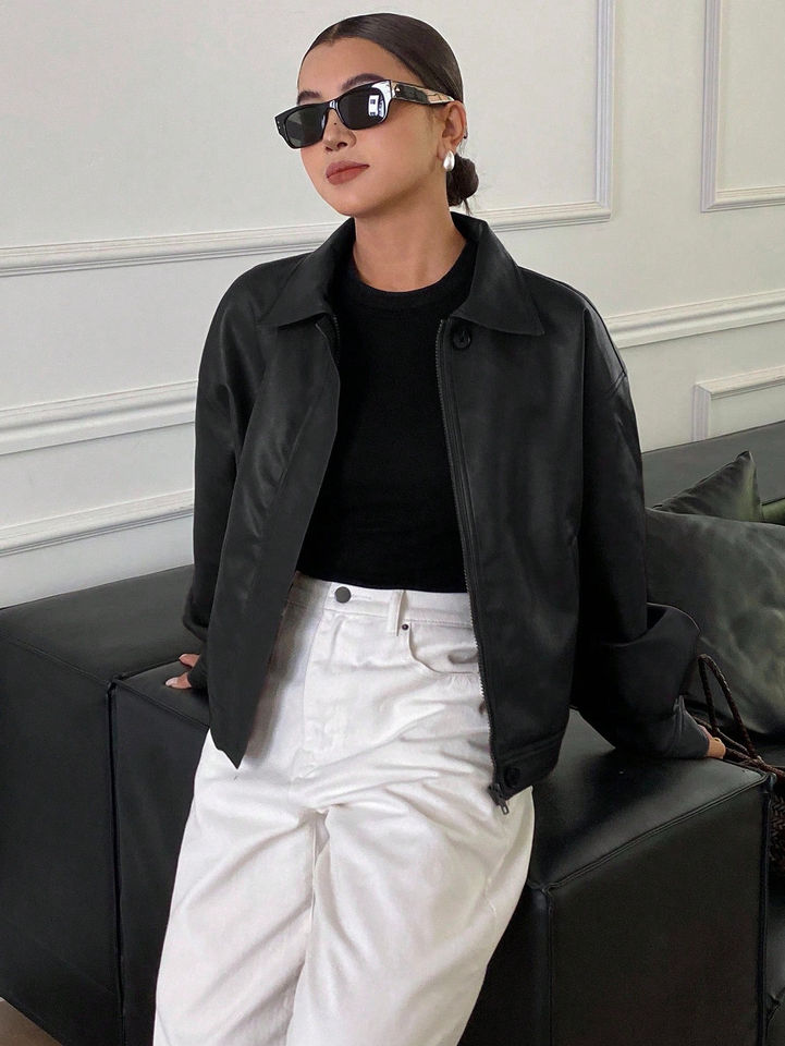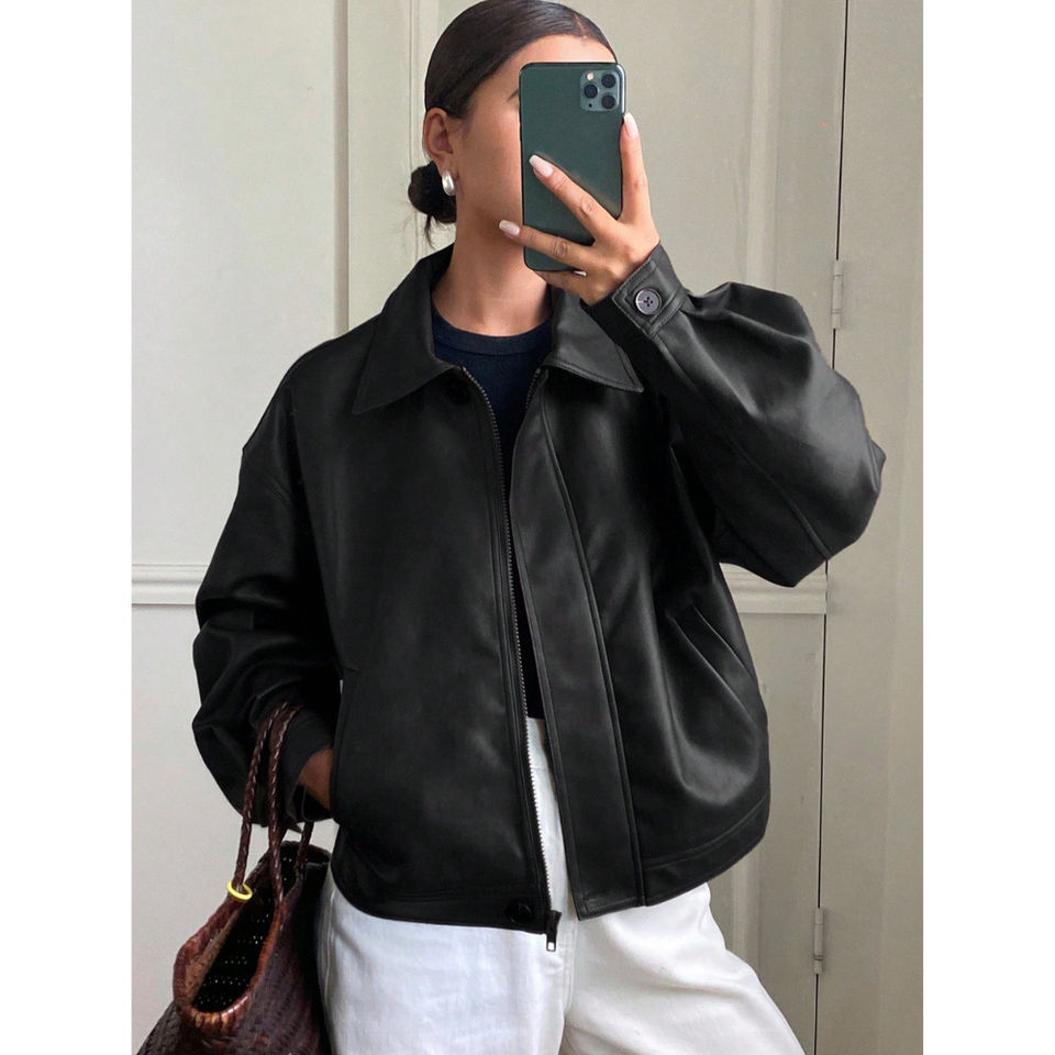 Custom Designed High Quality Genuine Leather Bomber Style Jacket Women Plus Size Button Closure Breathable Finished OEM