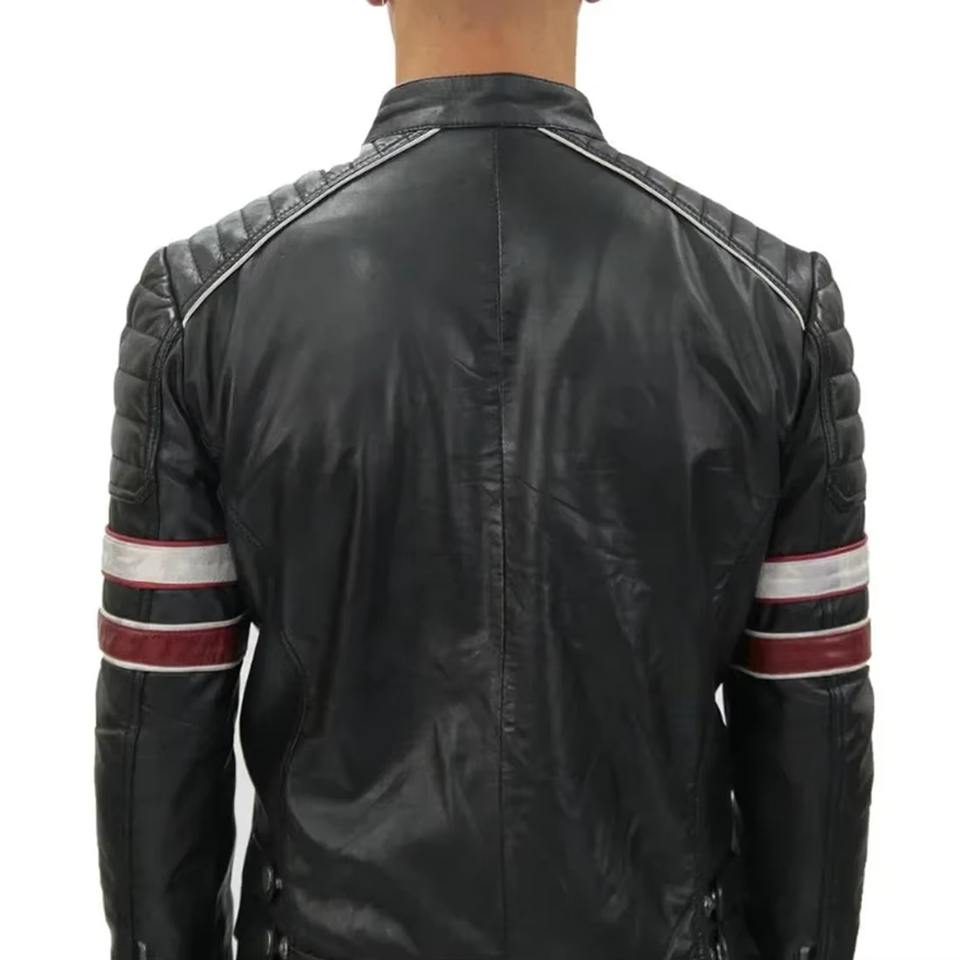 Custom Designed Men Leather Racer Jacket High Quality Padded Biker Coat with Stand Collar Plus Size winter jacket For Sale