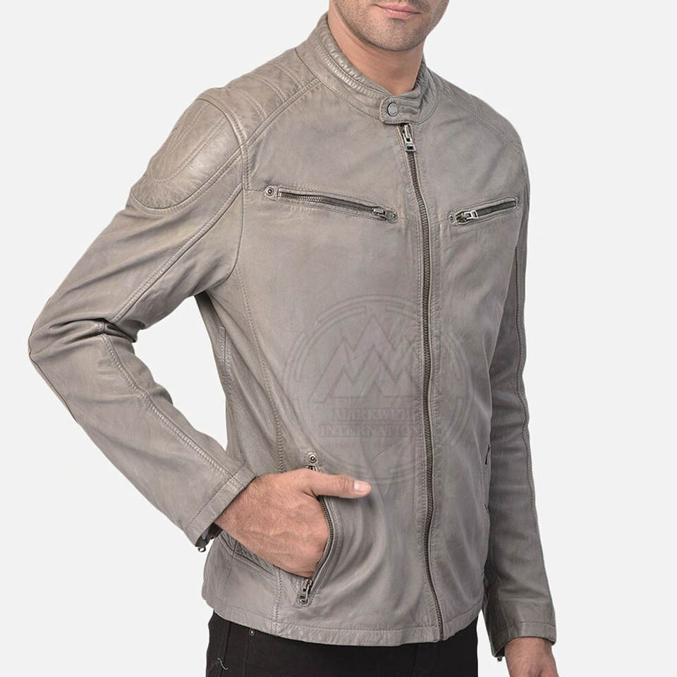 Custom Designed Solid Color Men's Leather Jacket with Stand Collar Streetwear Style
