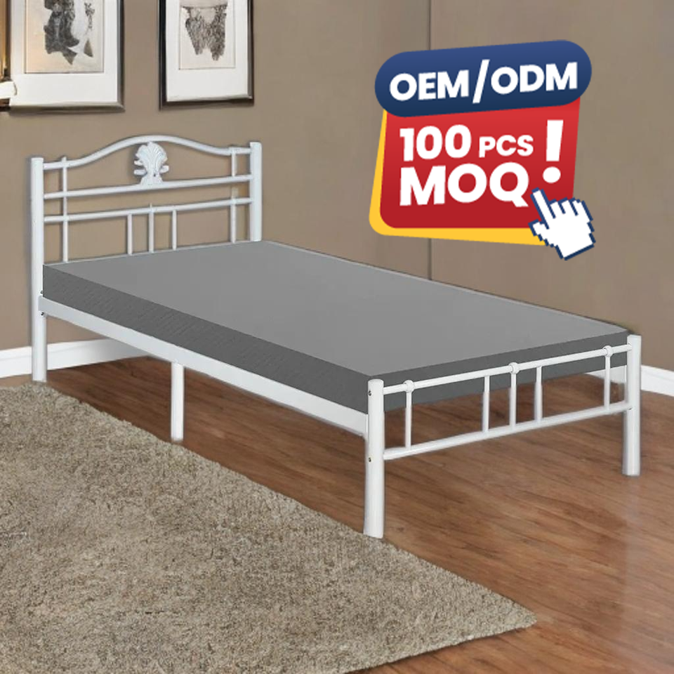 Custom Designed White Single Size Metal Hostel Bed Frame KD-1119 Modern Style for Bulk Order