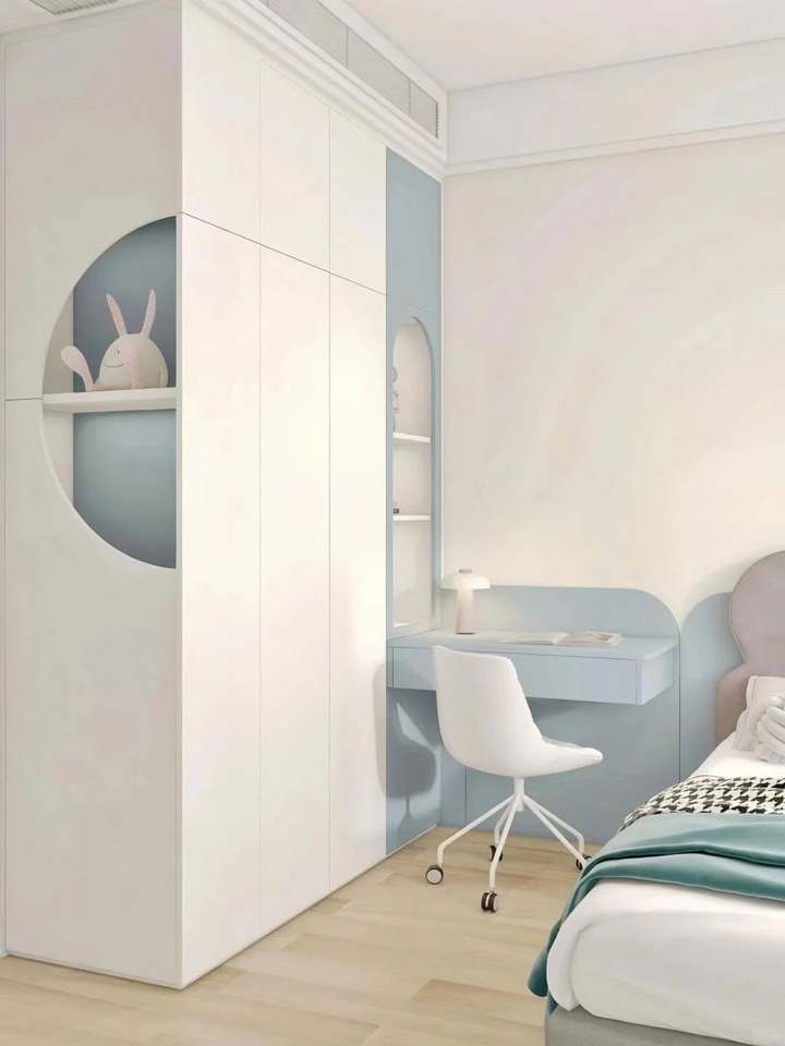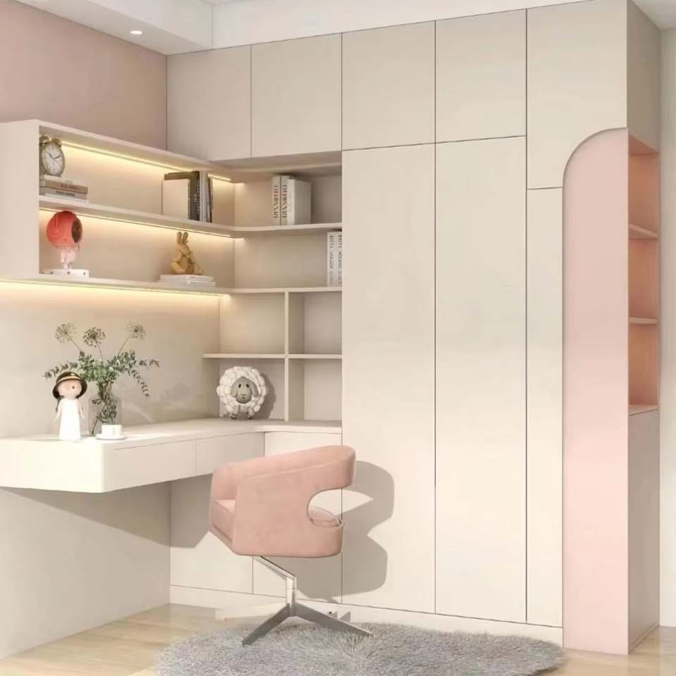Custom Designed Wood Bedroom Furniture Set for Kids Including Bed Desk Bookcase Wardrobe for Whole House Use for Children's Room