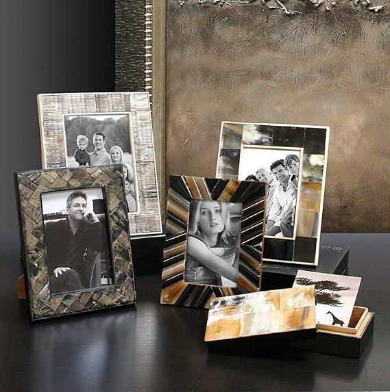 Custom Designed Wooden and Bone Inlay Photo Frame Horn Picture Frame with Resin for Home Decorative Purpose