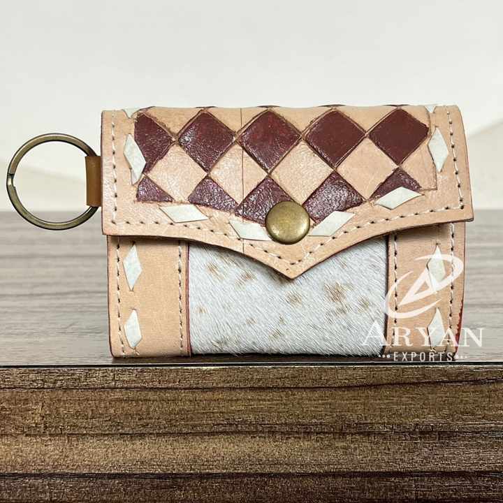Product name:Hand Tooled Checkered Pattern Mini Coin Purse & Card Holder