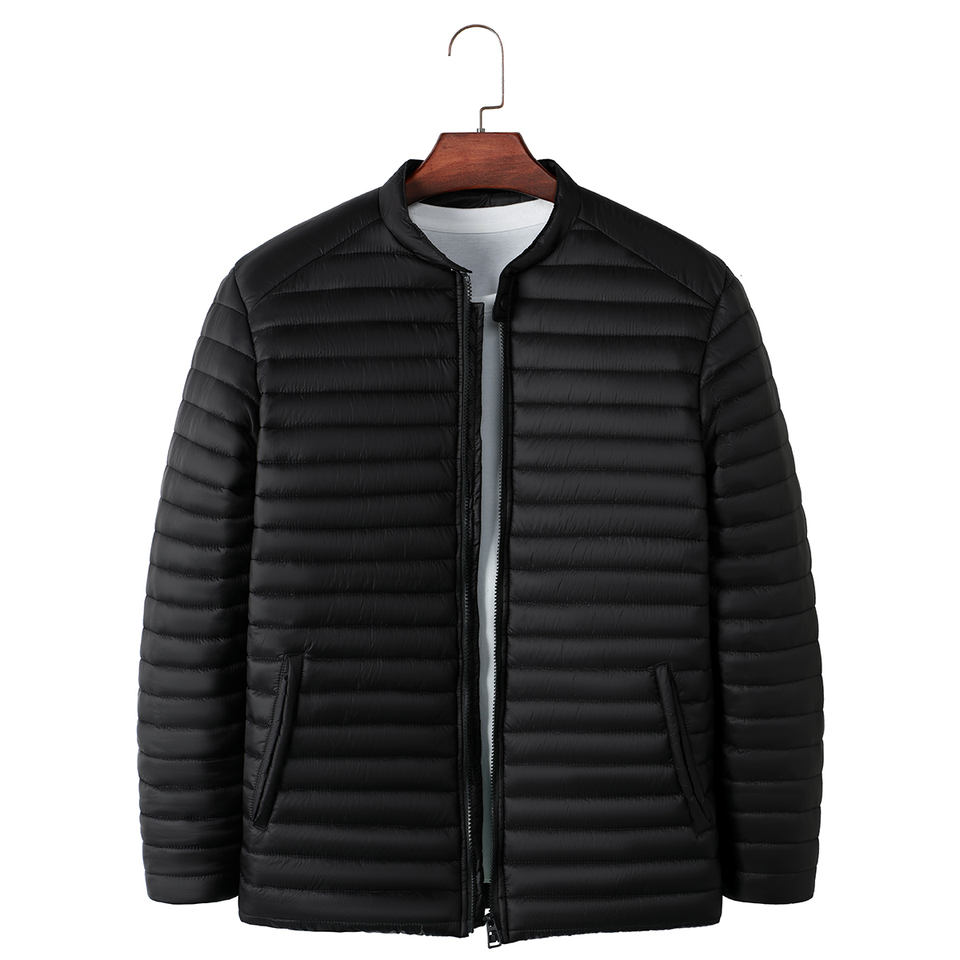 Custom Designer Men's Winter Puffer Jacket High Quality Canvas Stand Waterproof Quilted Bubble Padded Coat Zipper Closure