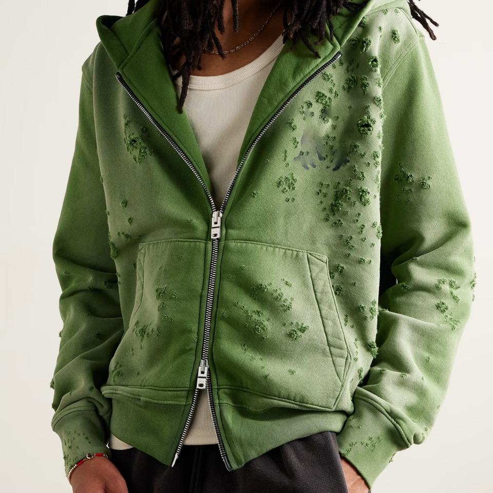 Custom Designer Zip up Black Hoodies Men Ripped 100% Cotton Jsersey Hoodie Print Logo Loungewear Outfit