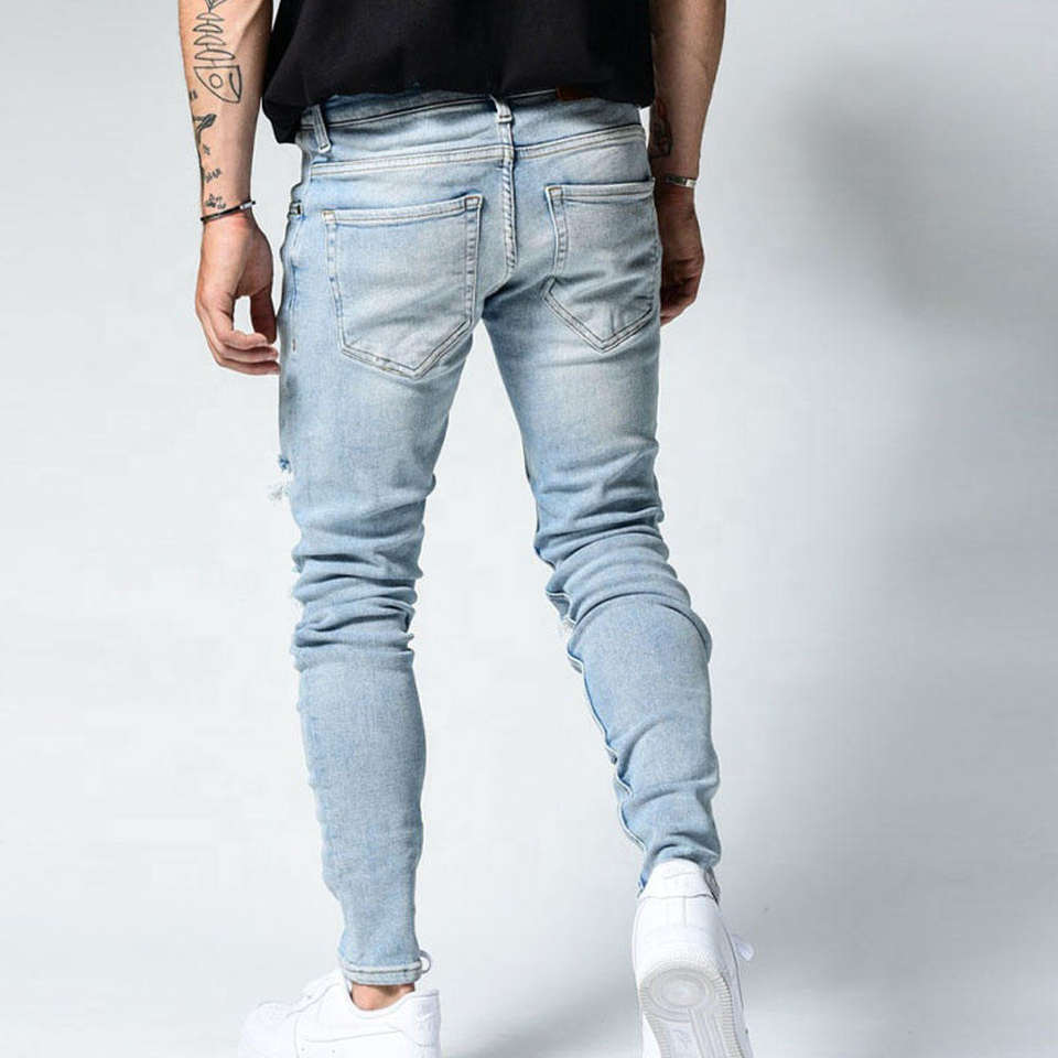 Custom Designers Men's Winter Sweet Solid Washed Ripped Straight Stretch Denim Pants Hot Sale Slim Fit Jeans