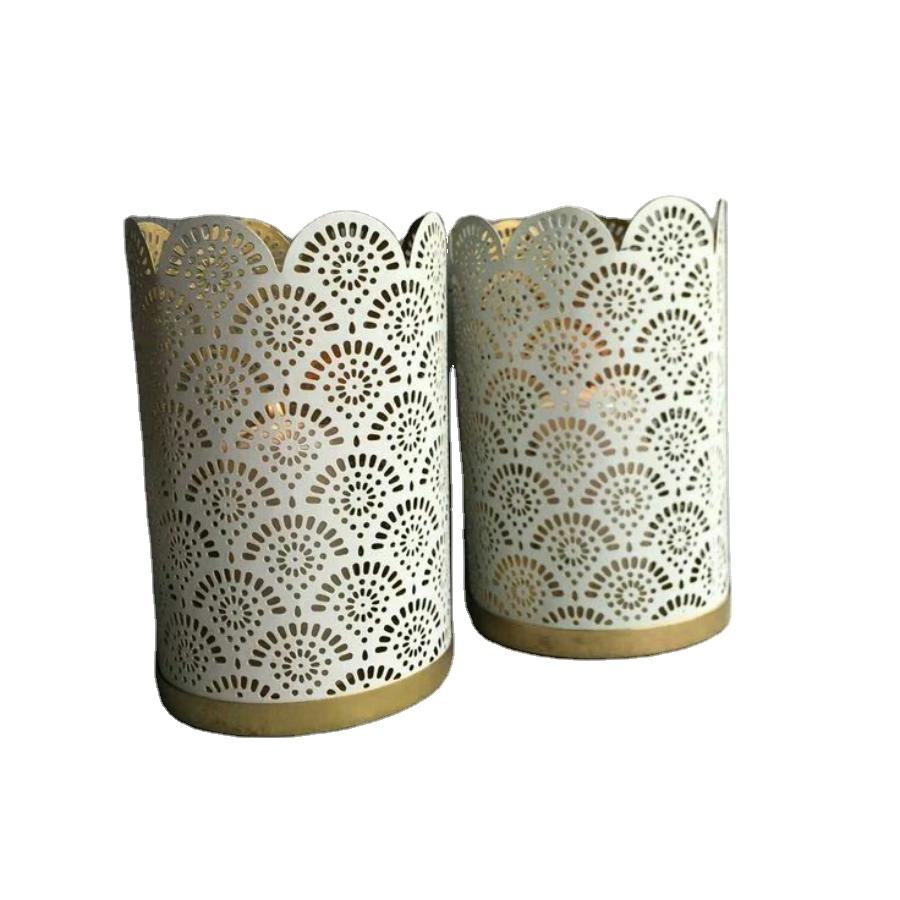Custom Designing Tealight Candle Holder Jar Set of 2 Handcrafts Metal Votive Table Home Decor Metal Candle Jars Lanterns Set