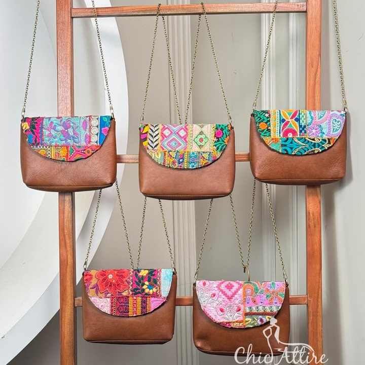 Genuine Leather with Colorful Embroidered Fabricsmaterial
