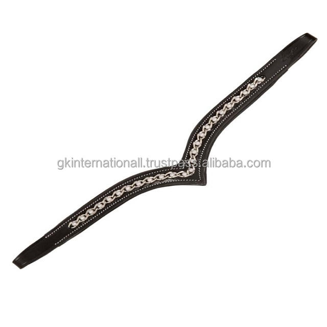 Custom Designs & Sizes V Shape Empty Channel Leather Horse Brow Band Inlaid With Spiral White Pearl Bling Dressage Brow Band
