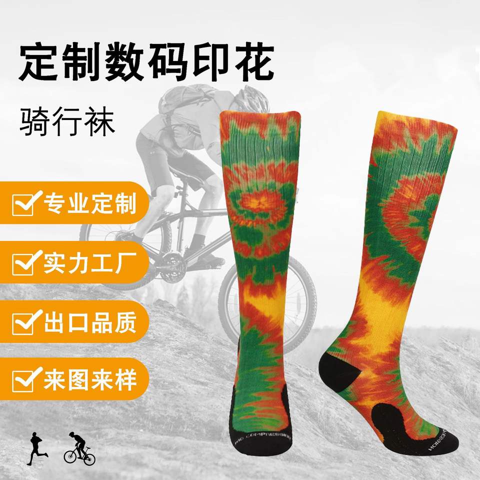 Custom Digital Printed Autumn Knitted Cycling Compression Socks Quick Dry Knee High Youth Sport Socks with Cuff & Bottom Logo