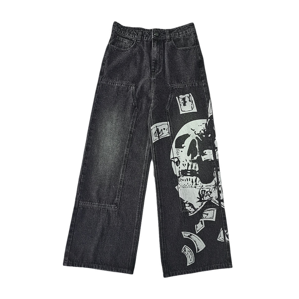 Custom Digital Printed Men's Cotton Straight Wide Leg Baggy Jeans Pants Loose Fit Washed Distressed Denim Pants For Men