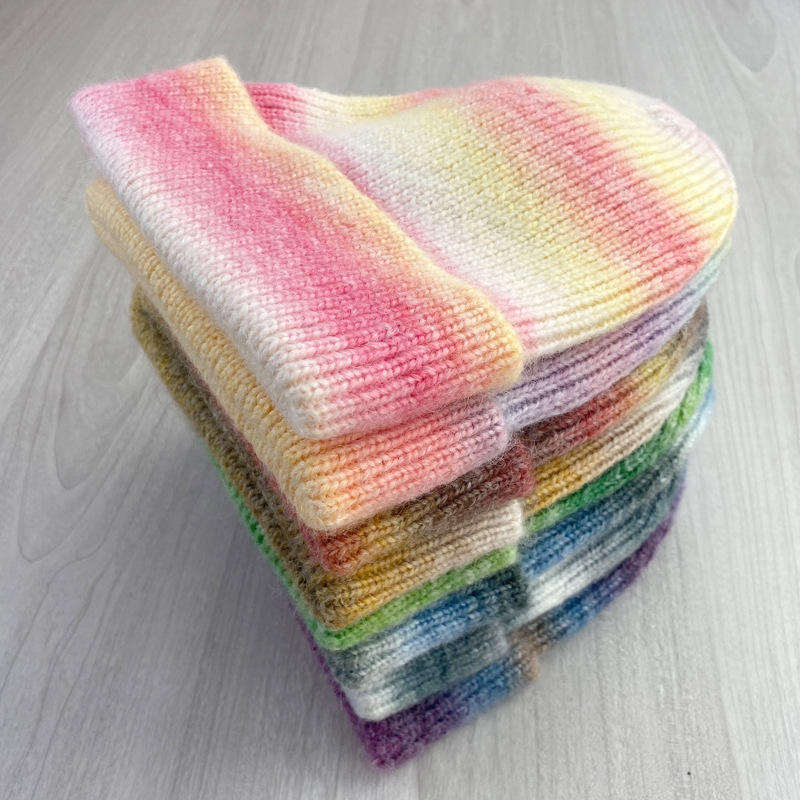 Custom Digital Printing Tie-dye Letter Pattern Knitted Beanie Hat for Unisex Travel Slouchy Stripe Wool Beanie Hat for Adult