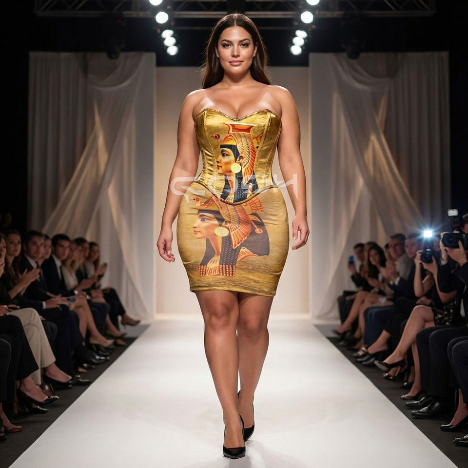 Custom Digital Sublimation Printed Egyptian Theme Corset With High Elasticity Mini Skirt Set