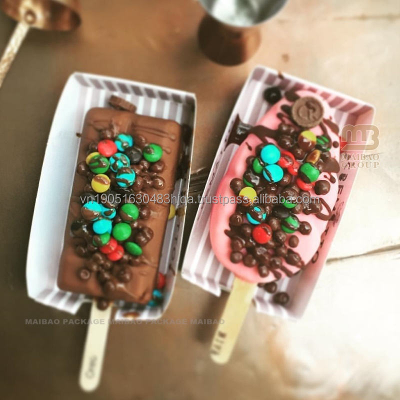 Custom Disposable Anti-drip Popsicle Tray Food Paper Box For Dessert Ice Cream Waterproof Takeout Packaging