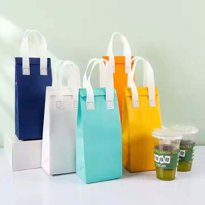 Custom Disposable Non Woven Drink Cooler Single Cup Takeaway Packing Bag for Milk Tea, Coffee, Beverage Shop Insulation Tote Bag