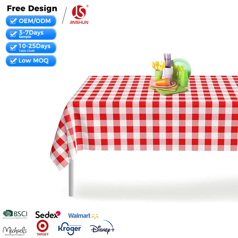 Custom Disposable Table Cloth Red Gingham Checkered Premium Disposable Plastic Picnic Tablecloth Table Decoration Cloth