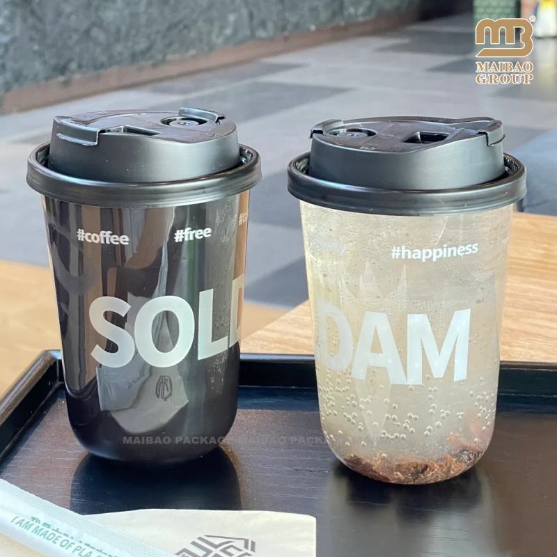 Custom Disposable U-Shaped Plastic Coffee Cup 12/16/32oz Black PET/Clear for Cold Drinks