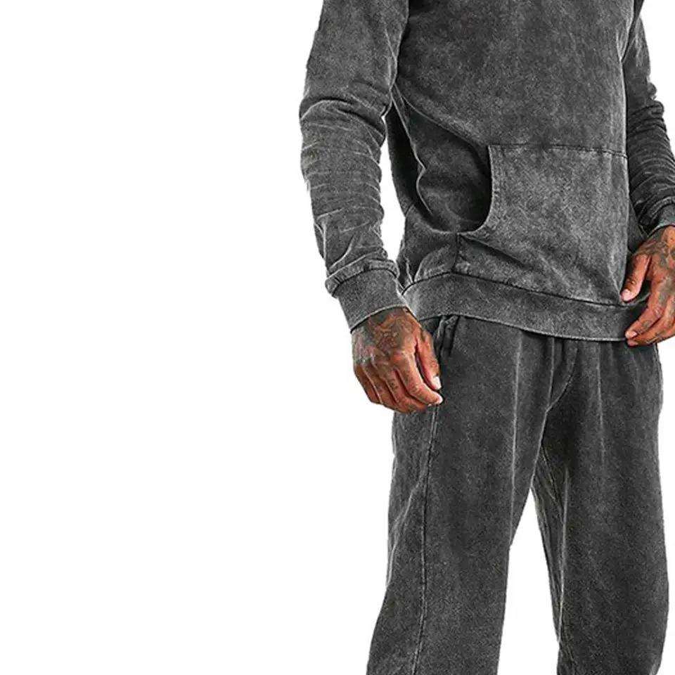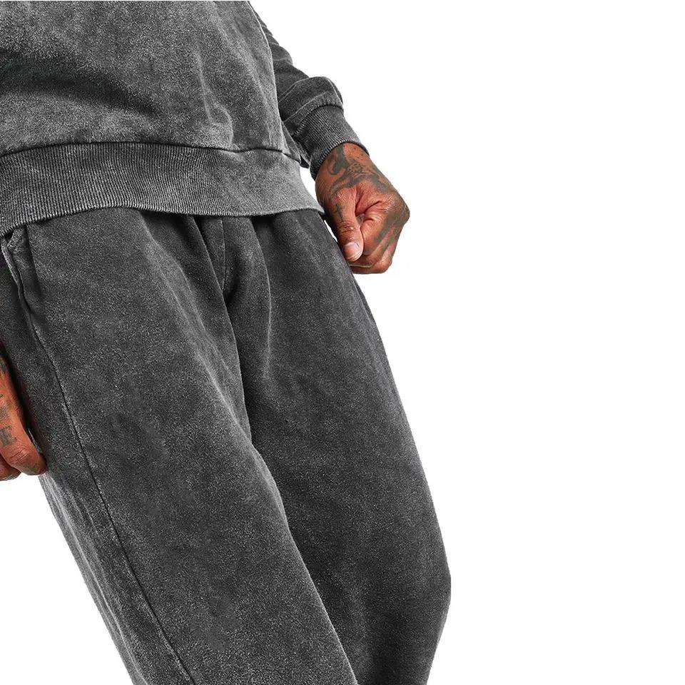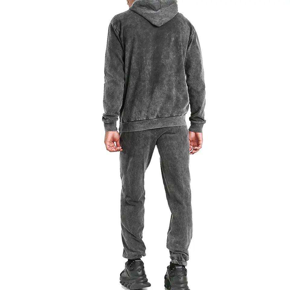 Custom Distress Acid Wash Vintage Tracksuit Sweatsuit for Men Winter Hoodie and Sweatpants Set with Flare Pant Suit Unisex Adult