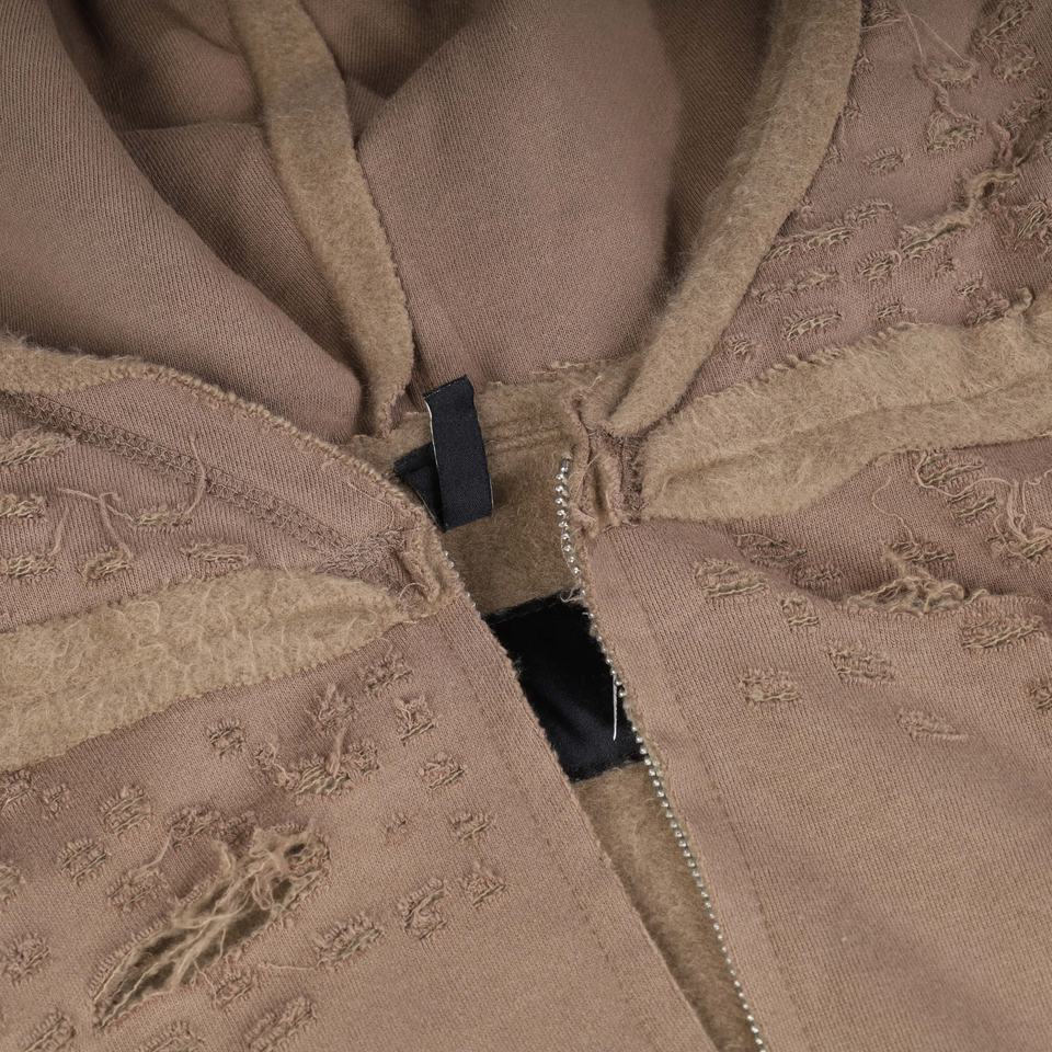 Custom Distressed Acid Washed Heavyweight 100% Cotton Terry Oversized Cut Out Zip-Up Hoodie for Men Autumn