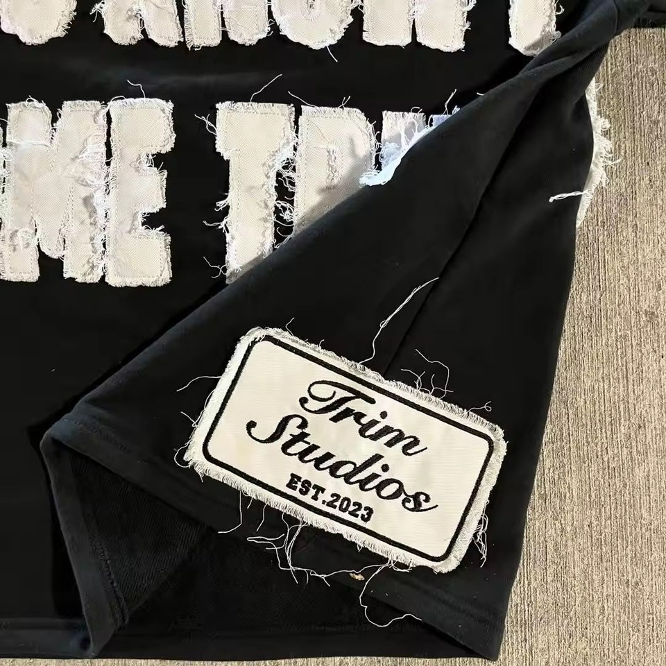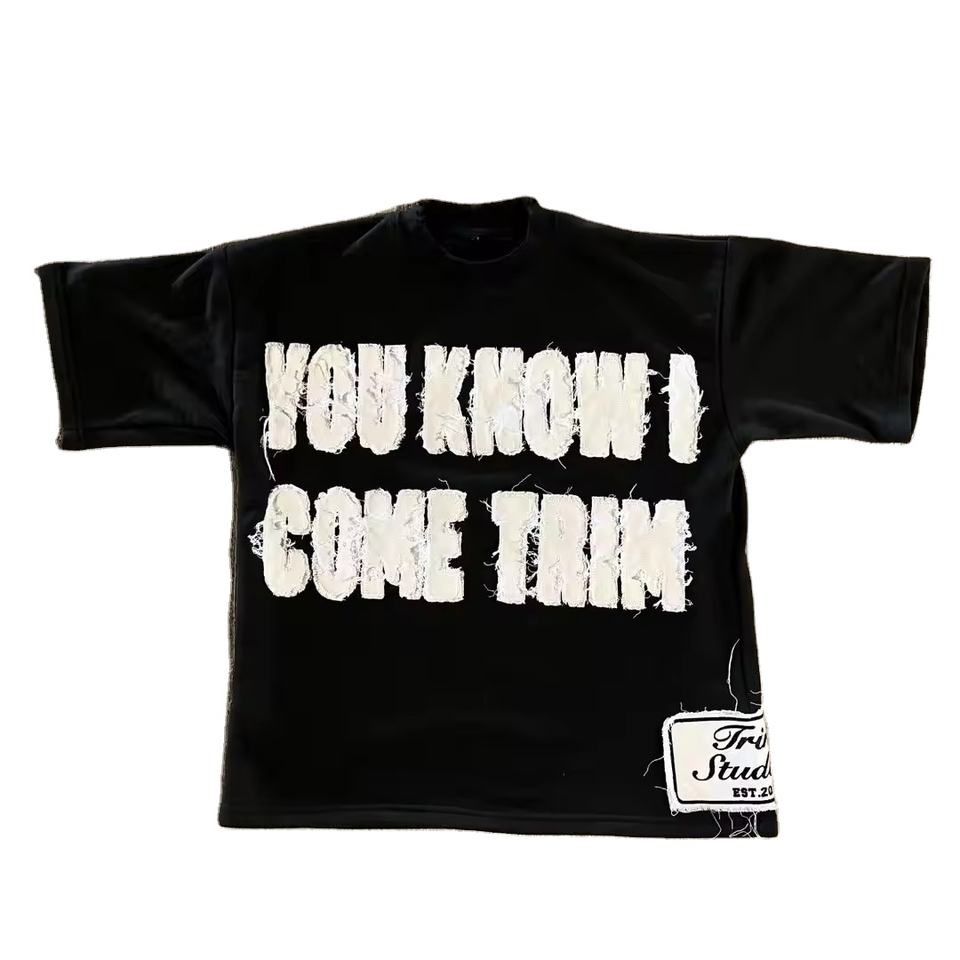 Custom Distressed Embroidery Applique Patch Boxy Fit Cropped Breathable T-Shirts Heavyweight 100% Cotton T Shirt for Men Sale