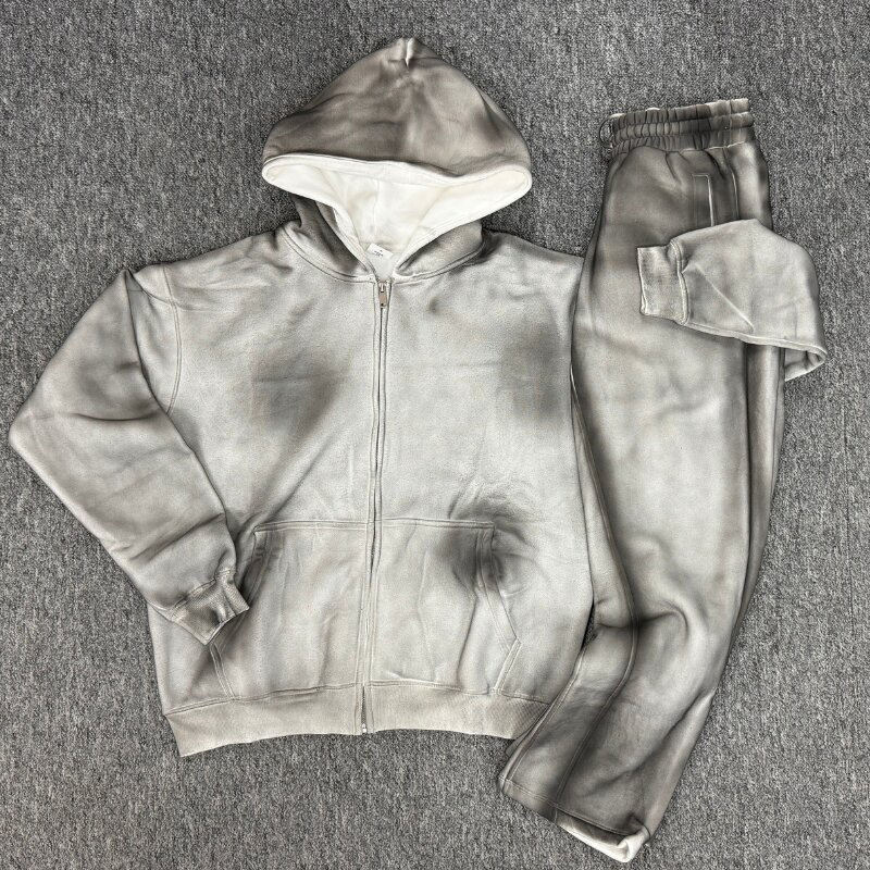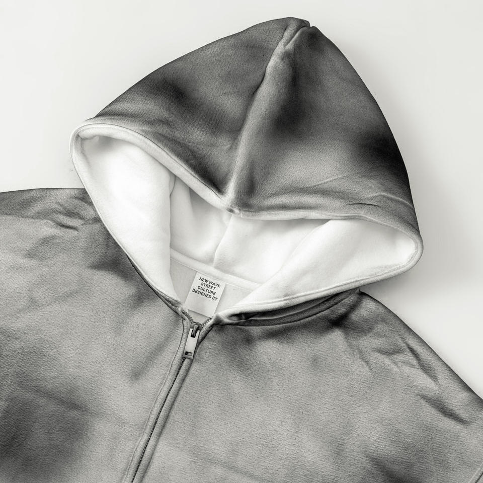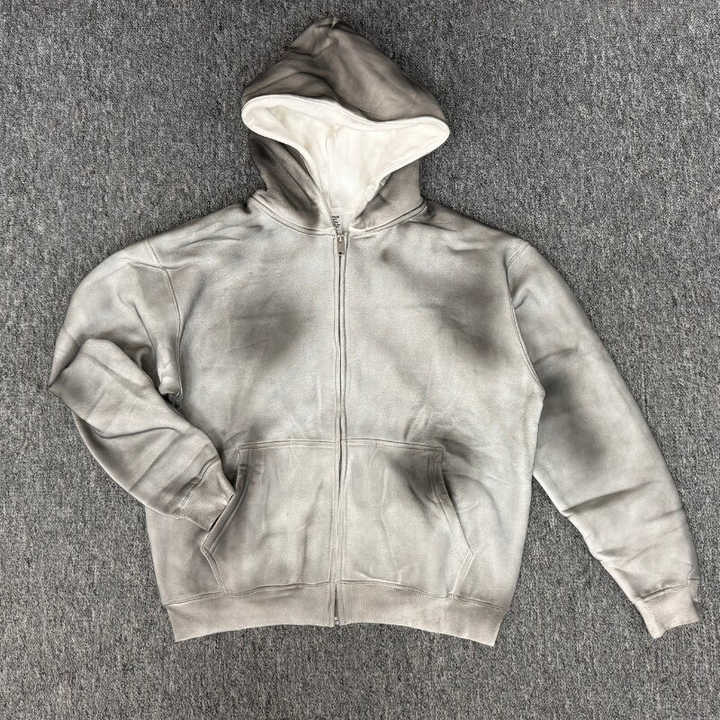 Custom Distressed Embroidery Hoodie Graphic Heavyweight Oversized Cotton Boxy Vintage Acid Wash Zip up Men's Hoodies Sweatshirts
