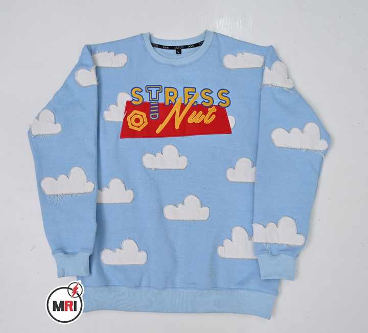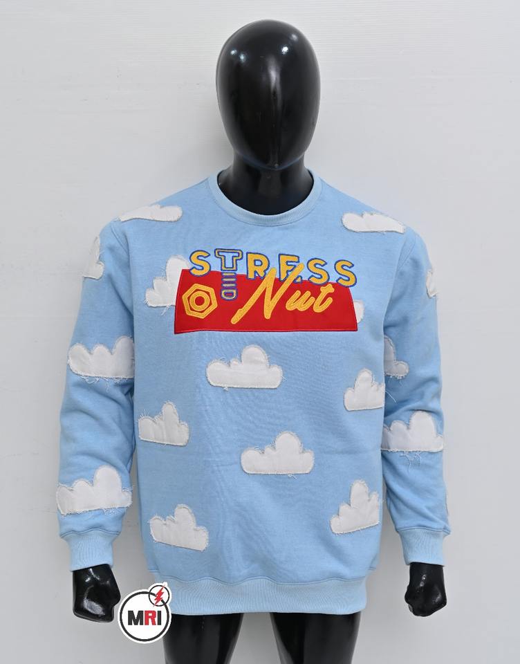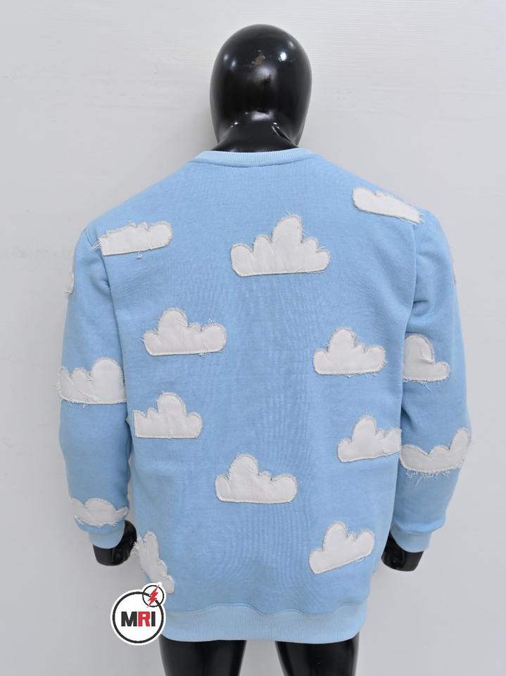 Custom Distressed Patch Embroidery Vintage cloud Applique Stitching Cropped Plain Front Embroidery Logo Hoodie For Men