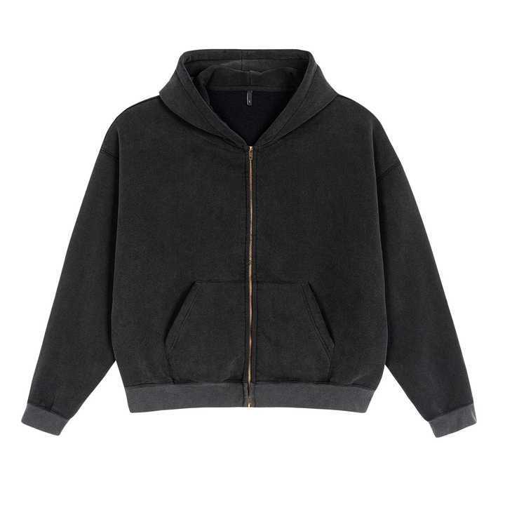 Custom Double Layer Hood Black Vintage Zip up Hoodie Drop Shoulder Boxy Oversized Acid Wash Hoodies for Men DDP Shipping