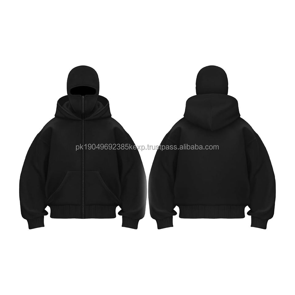 Custom Double Layer Ninja Balaclava Hoodie Heavy Weight Zip Fleece Mask Manufacturers Embroidered Cotton Hoodie