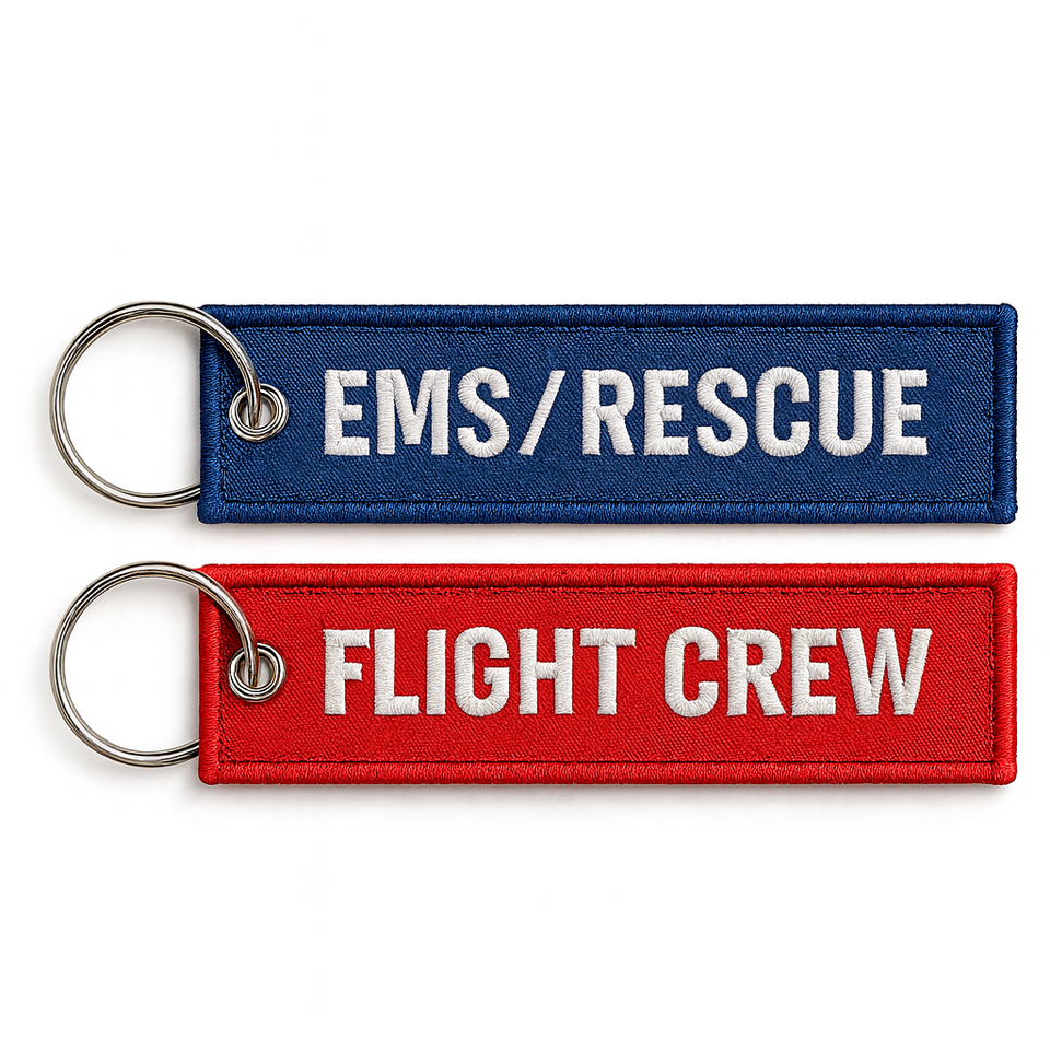 Custom Double Sided Embroidered Keychain Name Brand Logo Jet Tag Key Ring Custom Woven Embroidery Key Chain