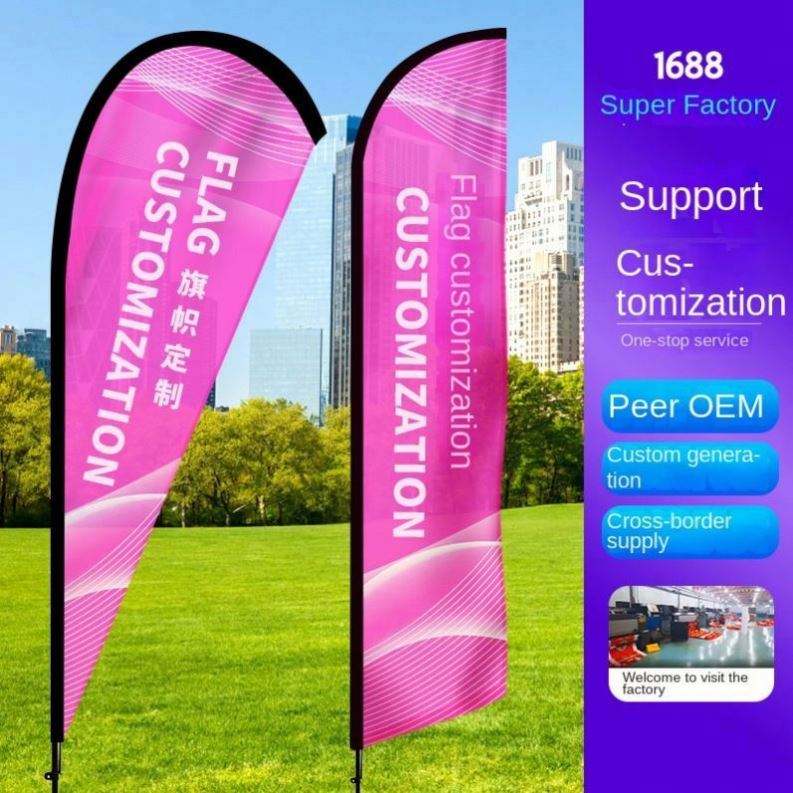 Custom Double-Sided Water Injection Beach Flag for Outdoor Advertising Factory Cross-Border Colorful Feather Flag Promotional