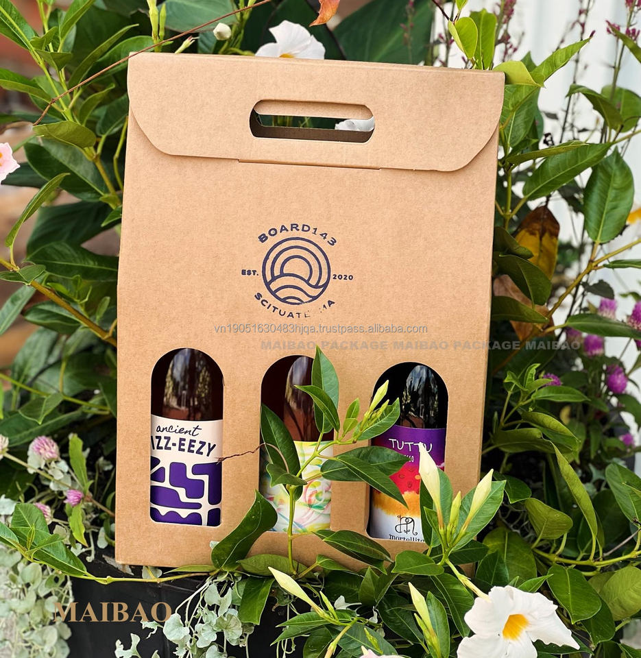 Custom Double Wine Bottle Carrier Corrugated Folding Wine Gift Bag Carton Boxes Packing With Handle