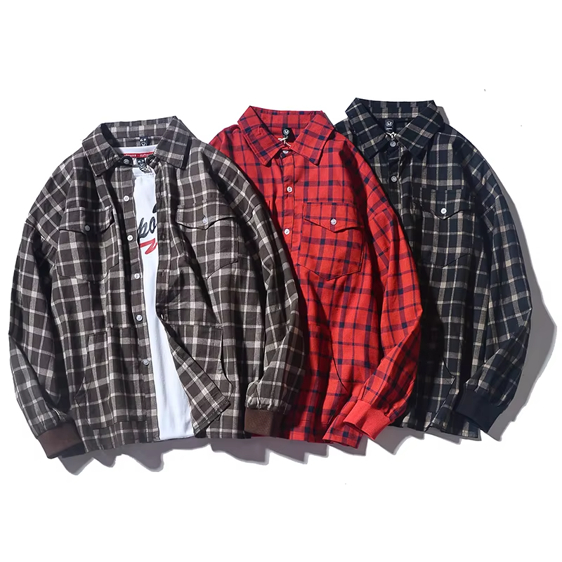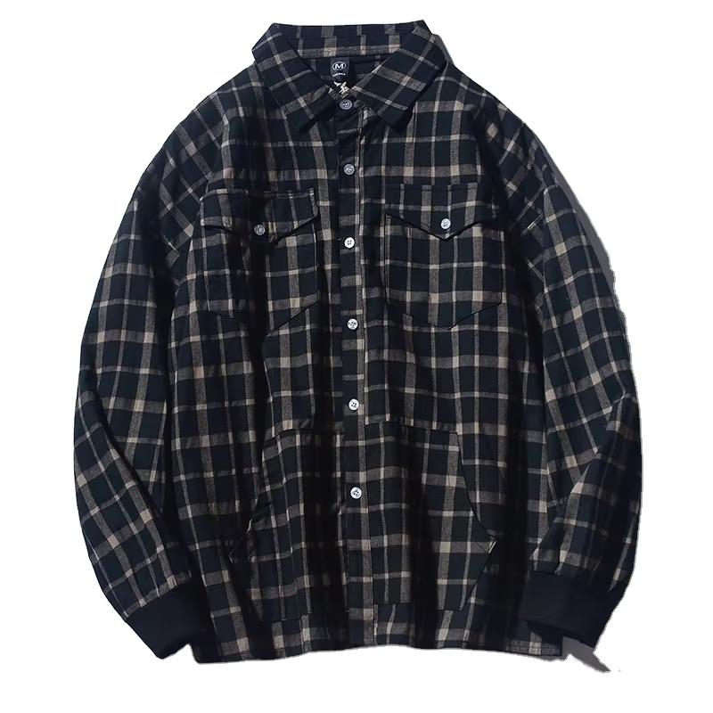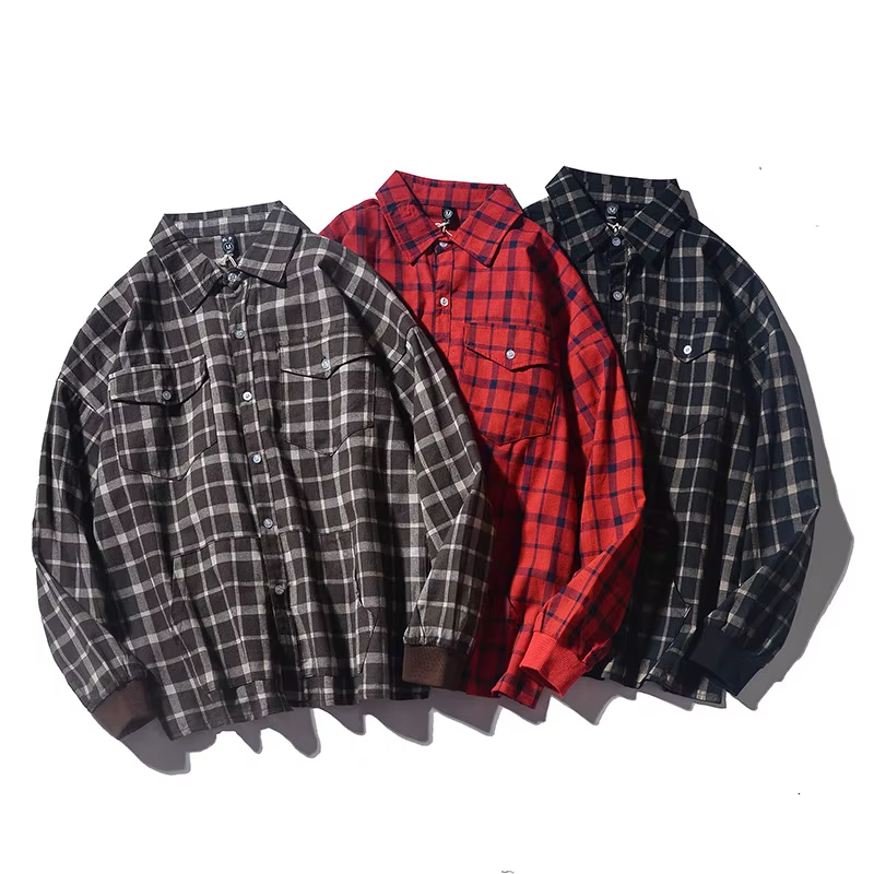 Custom Drop Shoulder Vintage Boxy Style Long Sleeve Flannel Shirt Oversized Plaid Flannel Shirts for Men 2025/26