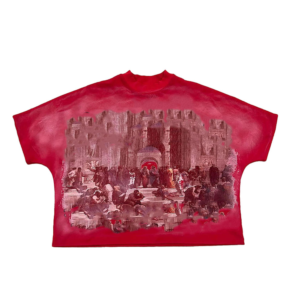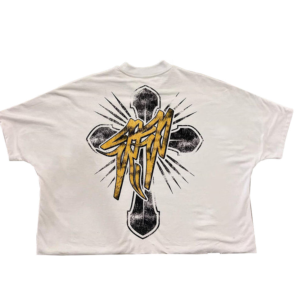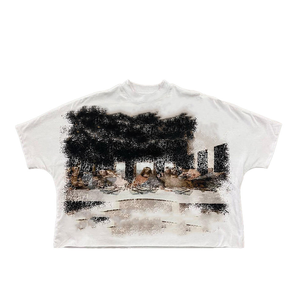 Custom Dtg Print Streetwear Graphic T-shirt Boxy Fit Acid Wash Cut and Sew 100% Cotton Thermal Cropped T-shirts for Men's