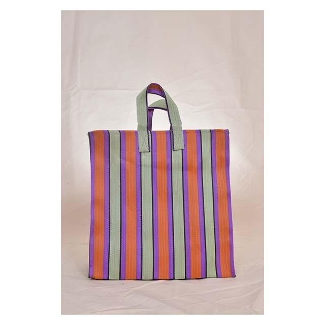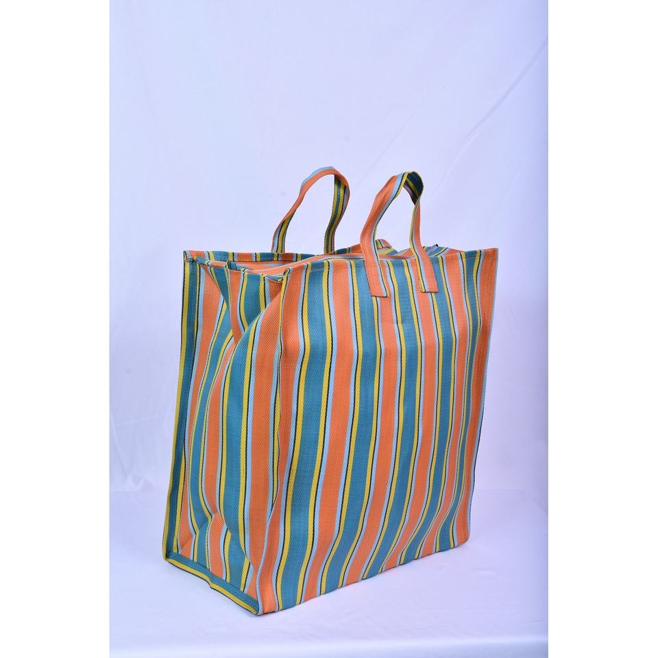 Custom Eco-Fabric Recycled PP Striped Pattern Shopping Tote Bag Sturdy Handle with Zipper Closure for Travel Market Promotions
