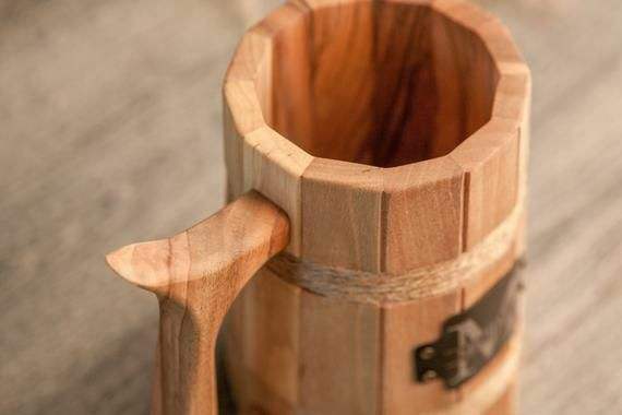 Custom Eco Friendly 100% Natural Organic Wooden Beer Mug Travel Coffee Cup with Wooden Handle Tumbler Mug Christmas Occasion