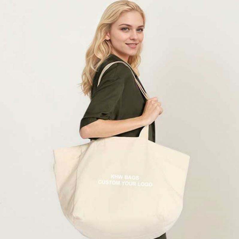 Custom Eco-Friendly 100% Organic Cotton Tote Bag Oversize Printed Canvas Natural Color Plain Shopping Bags