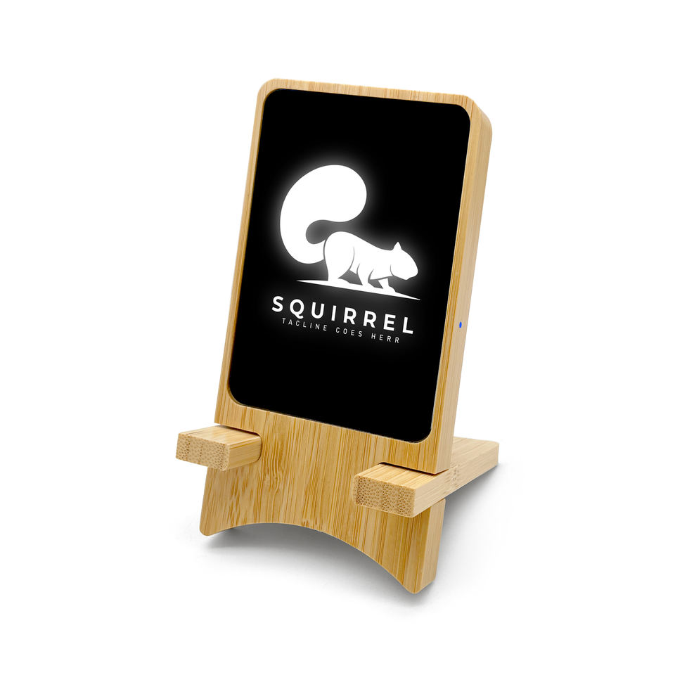Custom Eco-Friendly Bamboo Wireless Charging Stand with LED Logo Display Fast Charger for Smartphones
