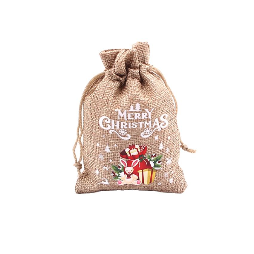 Custom Eco-Friendly Christmas Linen Drawstring Gift Bag Candy Storage Packaging Pouch & Bag for Party Favors