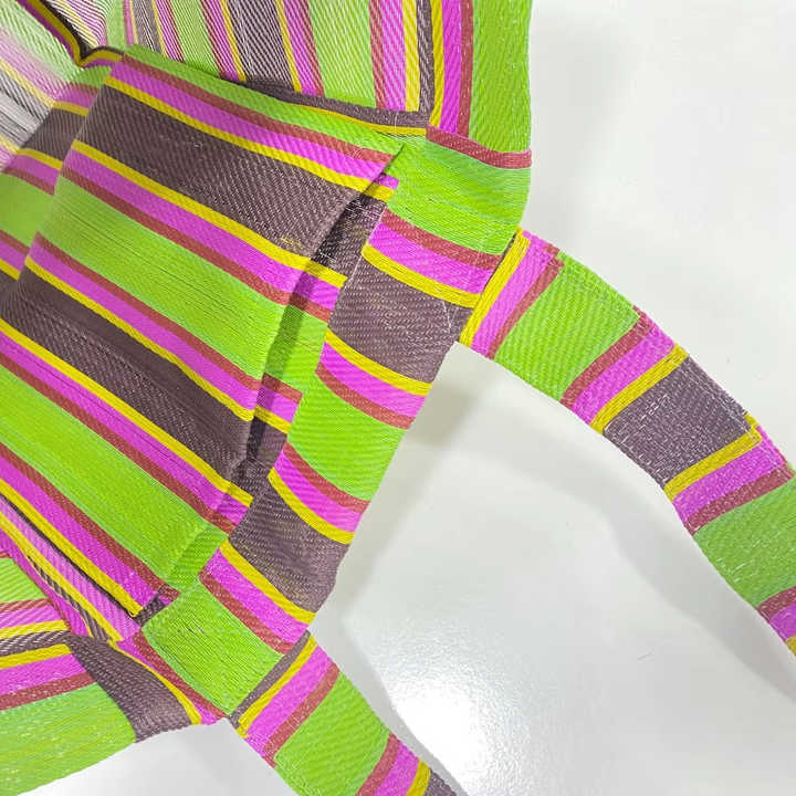 Custom Eco-Friendly Fashionable Handloom Recycled Beach and Cosmetic Bags Reusable Zipper Plastic Woven Striped Shopping Cases