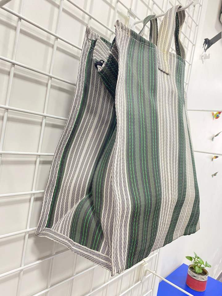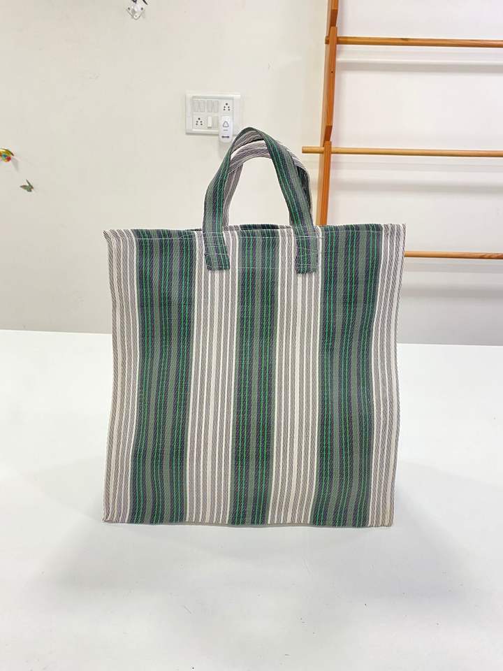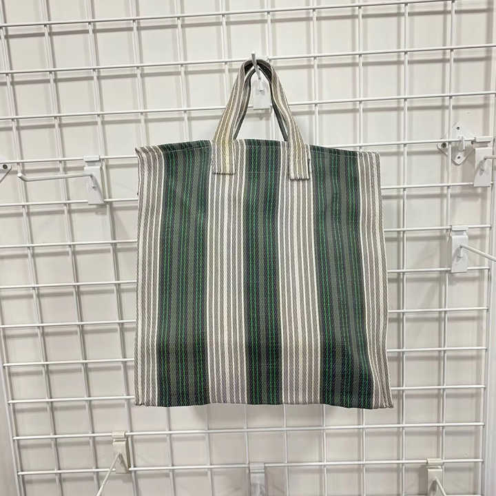Custom Eco-Friendly Fashionable Handloom Recycled Beach and Cosmetic Bags Reusable Zipper Plastic Woven Striped Shopping Cases