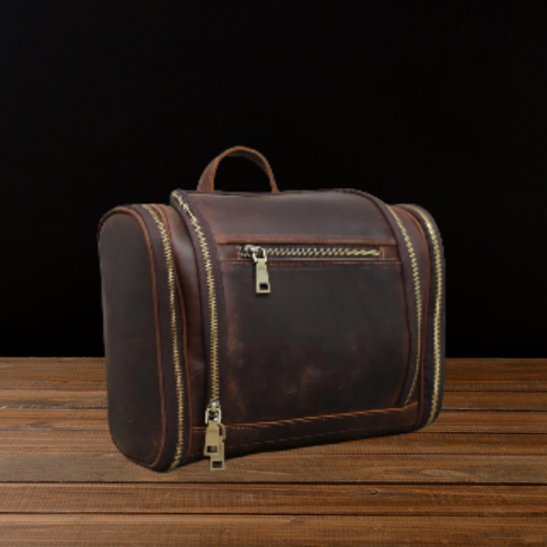 Custom Eco-Friendly Genuine Leather Dopp Kit for Bag Zipper Handmade Personalized Travel Shaving Kit for Men Groomsmen Gift