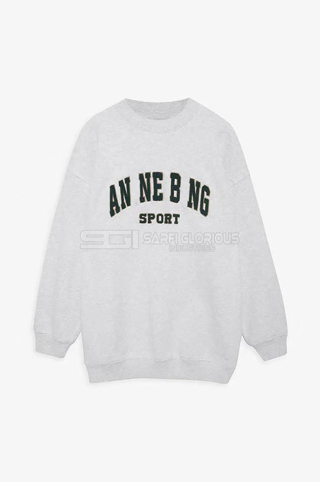 Custom Eco-Friendly Heavy Weight 380g Woven Winter Crewneck Sweatshirts for Women Solid & Embroidered Front