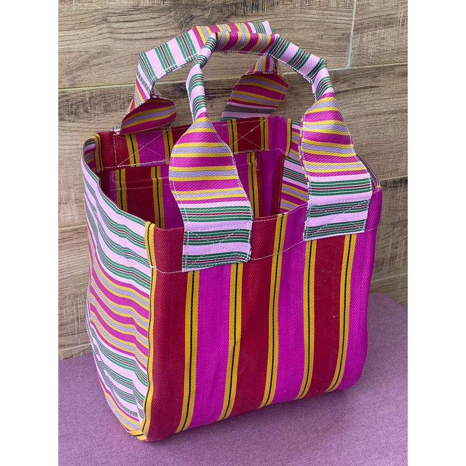 Custom Eco-Friendly Mini Tote Bag Recycled Nylon Striped Design Open Closure Pocket Fashionable Portable Travel Beach Bag for