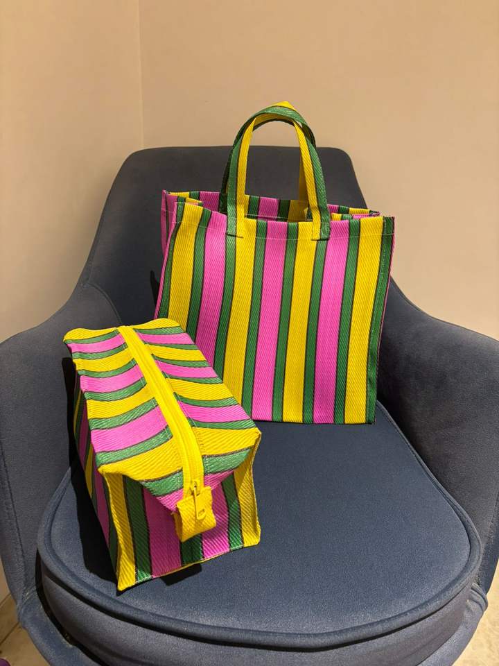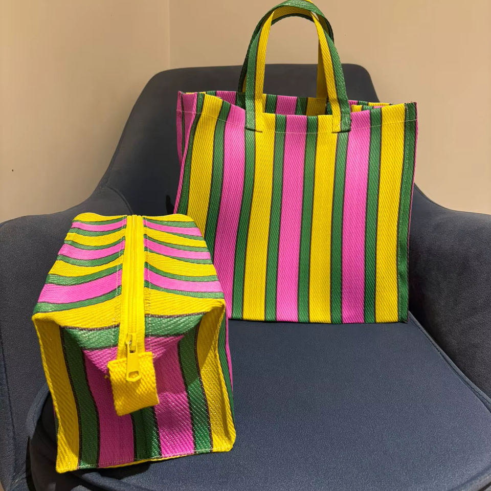 Custom Eco-Friendly Recycled Striped Stand Nylon Shopping Tote Bag Fashionable Reusable Zipper Cosmetic Pouches Travel Large