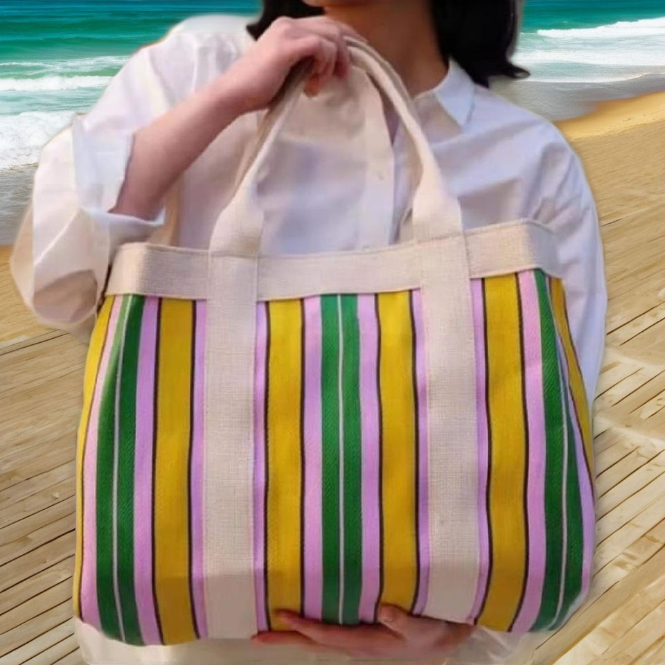 Custom Eco-Friendly Reusable Striped Zipper Nylon Shopping Bag Stand Cosmetic for Toiletry Pouches for Travel Beach Makeup