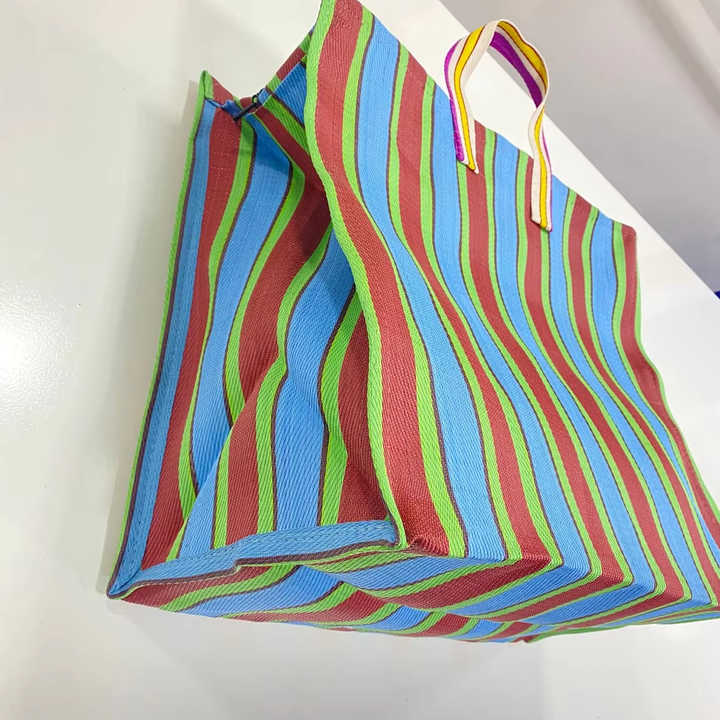 Eco-Friendly Custom Handloom Recycled Plastic Woven Beach Cosmetic Bags Cases Fashionable Striped Shopping Bags Reusable Zipper