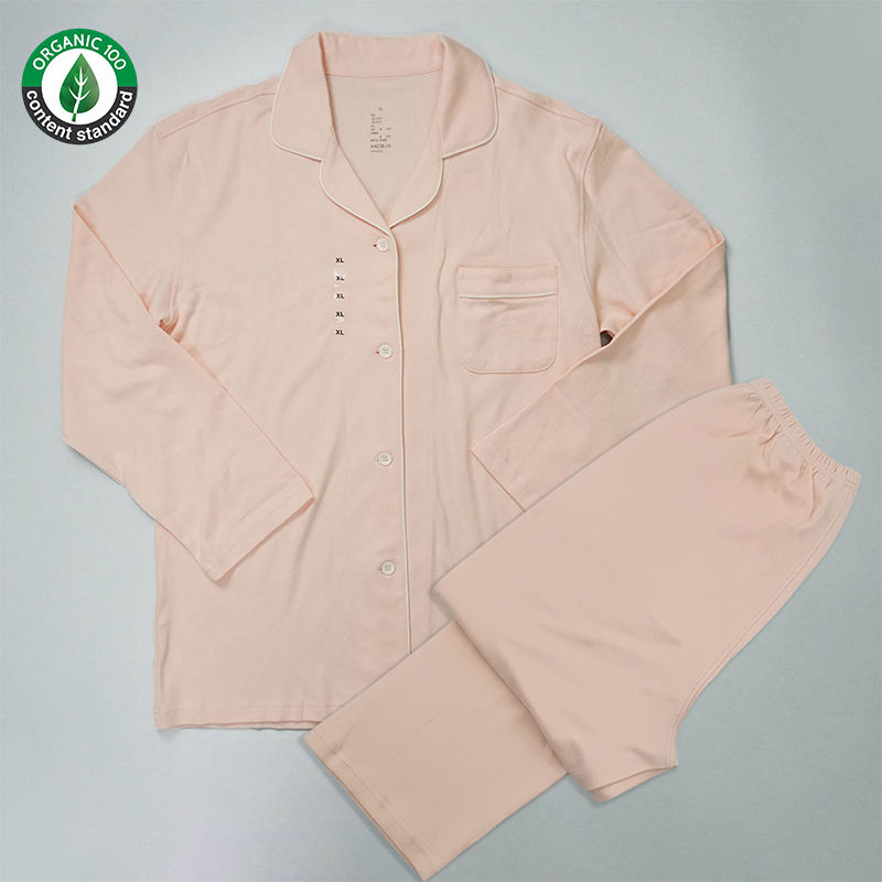 Custom Eco-Friendly Soft Breathable Women'S Sleepwear Sets, Button up Long Pants 100% Organic Cotton Pyjamas Sets for Ladies