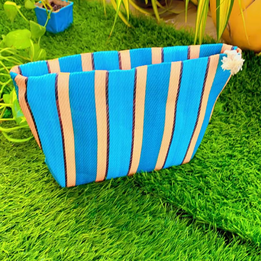 Custom Eco-Friendly Striped Handled Travel Beach Tote Reusable Zipper Logo Label Recycled Nylon High Quality Shopping Bag