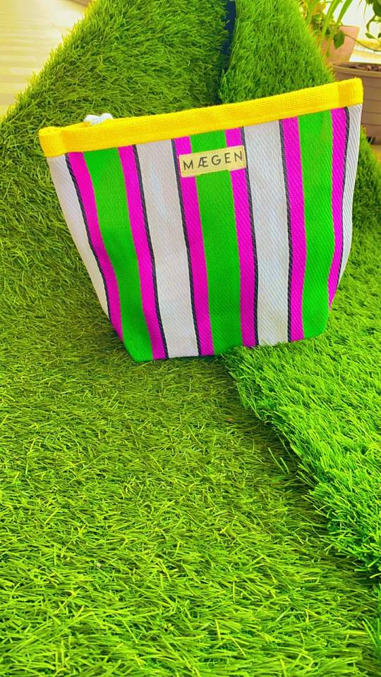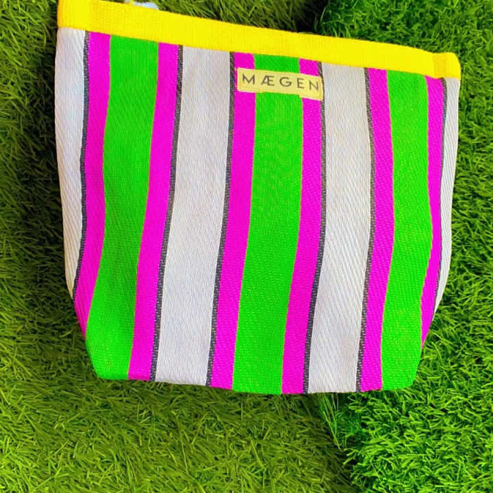 Custom Eco-Friendly Striped Travel Beach Tote Reusable Zipper with Logo Label Recycled Nylon Cosmetic Toiletry Shopping Bag